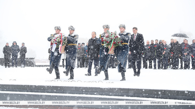 BREST, 22 November (BelTA) – Belarusian Minister of Foreign Affairs Maksim Ryzhenkov and his Russian counterpart Sergey Lavrov laid flowers at the Eternal Flame in the Brest Hero Fortress memorial, BelTA has learned.