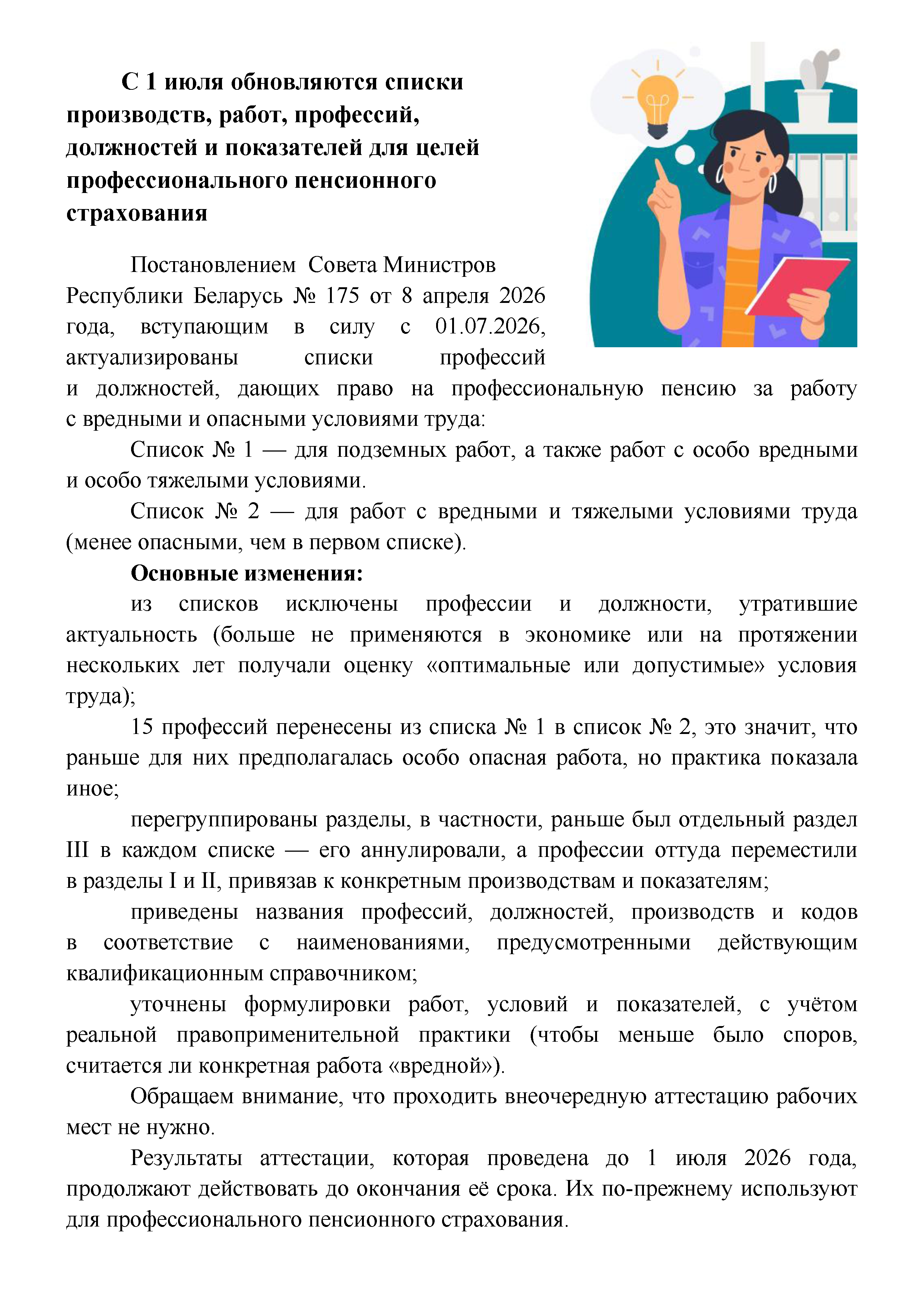 С 1 ИЮЛЯ ОБНОВЛЯЮТСЯ СПИСКИ ПРОИЗВОДСТВ, РАБОТ, ПРОФЕССИЙ, ДОЛЖНОСТЕЙ И ПОКАЗАТЕЛЕЙ ДЛЯ ЦЕЛЕЙ ПРОФЕССИОНАЛЬНОГО ПЕНСИОННОГО СТРАХОВАНИЯ