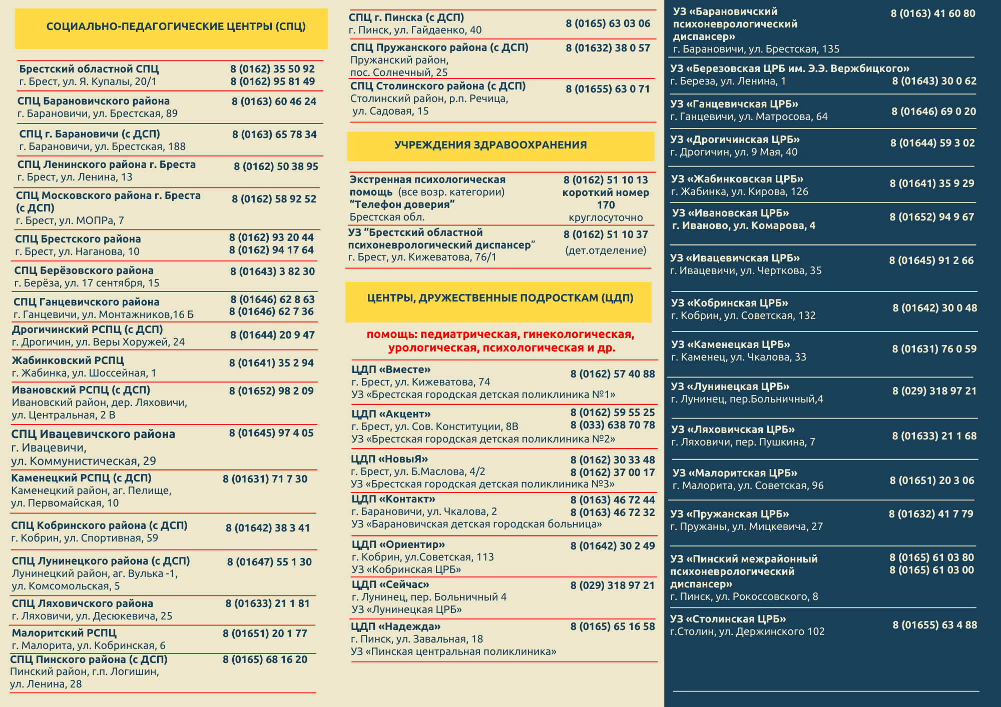 Региональная карта помощи несовершеннолетним, пострадавшим от сексуального насилия или эксплуатации, Брестской области