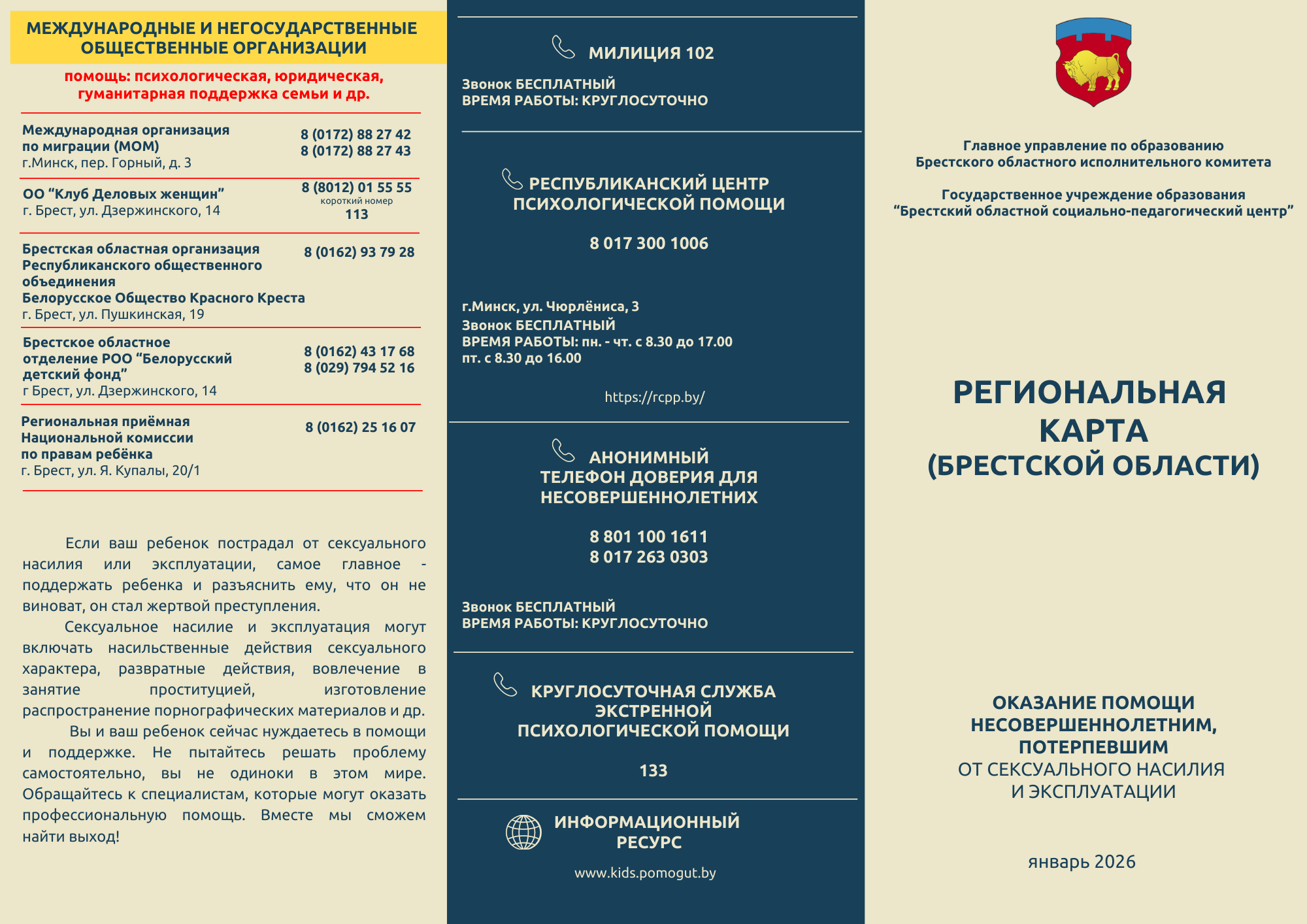 РЕГИОНАЛЬНАЯ КАРТА ПОМОЩИ НЕСОВЕРШЕННОЛЕТНИМ, ПОСТРАДАВШИМ ОТ СЕКСУАЛЬНОГО НАСИЛИЯ ИЛИ ЭКСПЛУАТАЦИИ, БРЕСТСКОЙ ОБЛАСТИ
