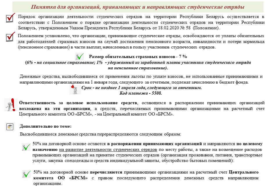 Памятка для организаций, принимающих и направляющих студенческие отряды